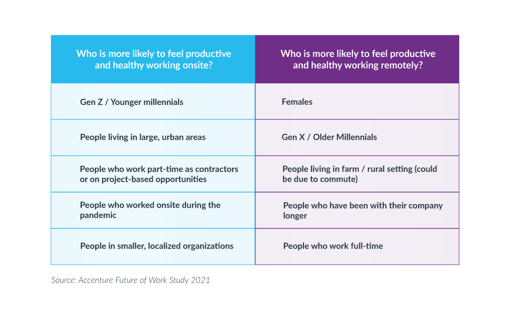 According to Accenture’s recent findings, oftentimes, what determines people’s satisfaction has less to do with where they work and more to do with having all the resources they need to be productive.