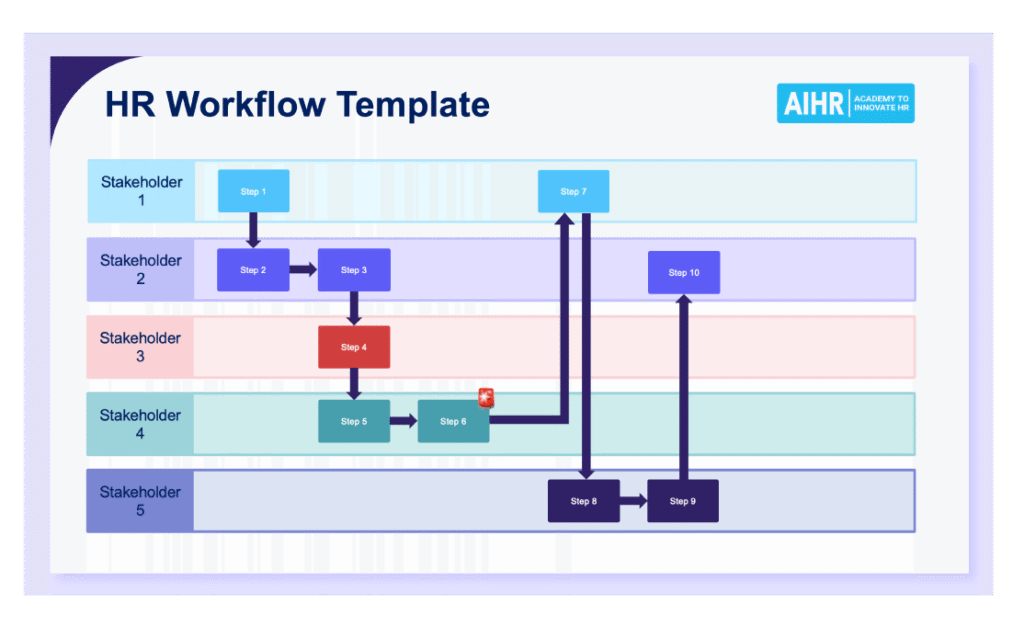 An HR workflow template provides a structured approach to mapping how work currently flows, clarifying responsibilities and approvals, and preparing your processes for automation in your HRIS or workflow tool.