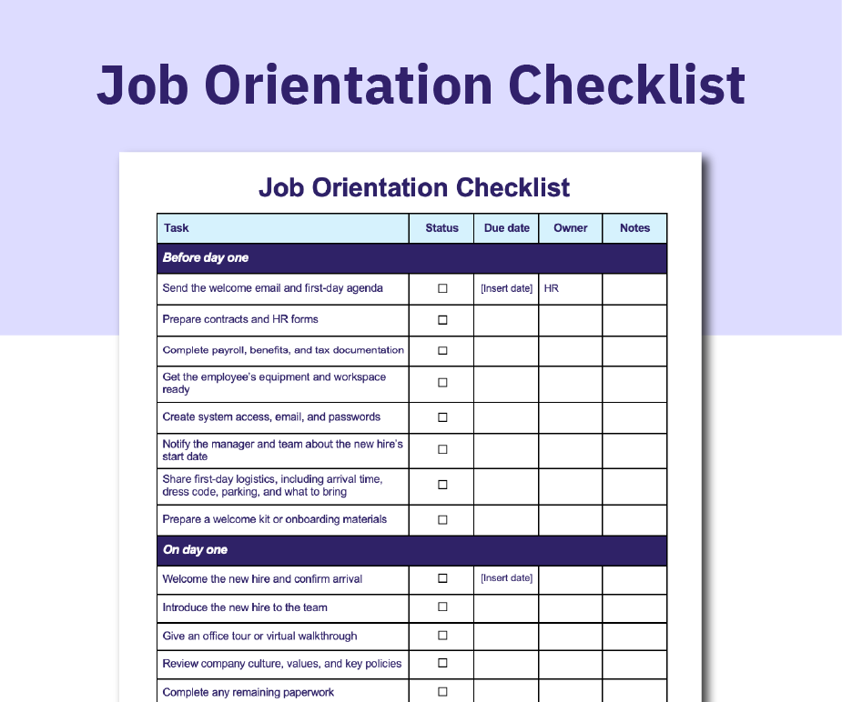 At the same time, encourage employees to ask questions and get to know their peers. Keep the program specific and consistent for all new hires by using a quick job orientation checklist.