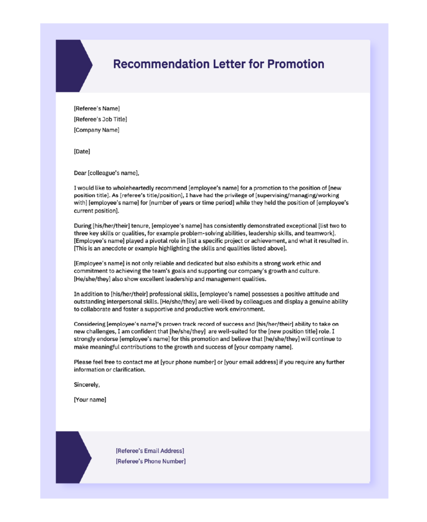 - Recommendation letter for promotion