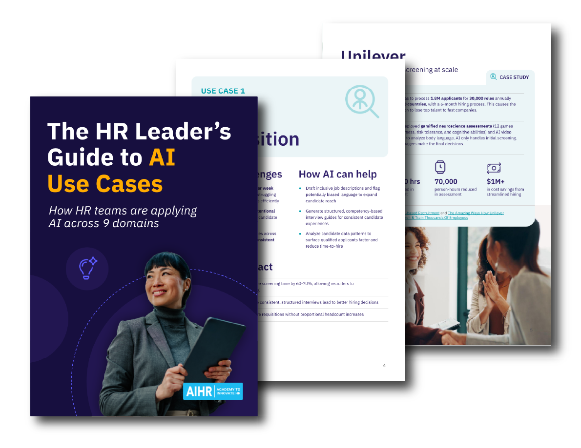 If you’re an HR leader trying to move from “we should be doing something with AI” to “here’s where we’re starting and why,” this guide is for you. Whether you’re a CHRO building a people strategy or an HR director looking for credible, evidence-based starting points, you’ll finish this guide with a clearer view of what’s possible and a practical path to get there.